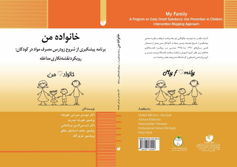 کتاب خانواده من برنامه پیشگیری از شروع زودرس مصرف مواد در کودکان: رویکرد نقشهنگاری مداخله کتاب حاضر به توصیف چگونگی توسعه برنامه شواهد و نظریه محورِ پیشگیری از شروع مصرف زودرس مواد در کودکان سن پیش از دبستان طی سالهای 1391 تا 1395 مبتنی بر رویکرد نقشهنگاری مداخله زیر نظر گروه آموزش و ارتقاء سلامت دانشگاه تربیت مدرس و گروه روانشناسی اجتماعی و کار دانشگاه ماستریخت هلند پرداخته است.